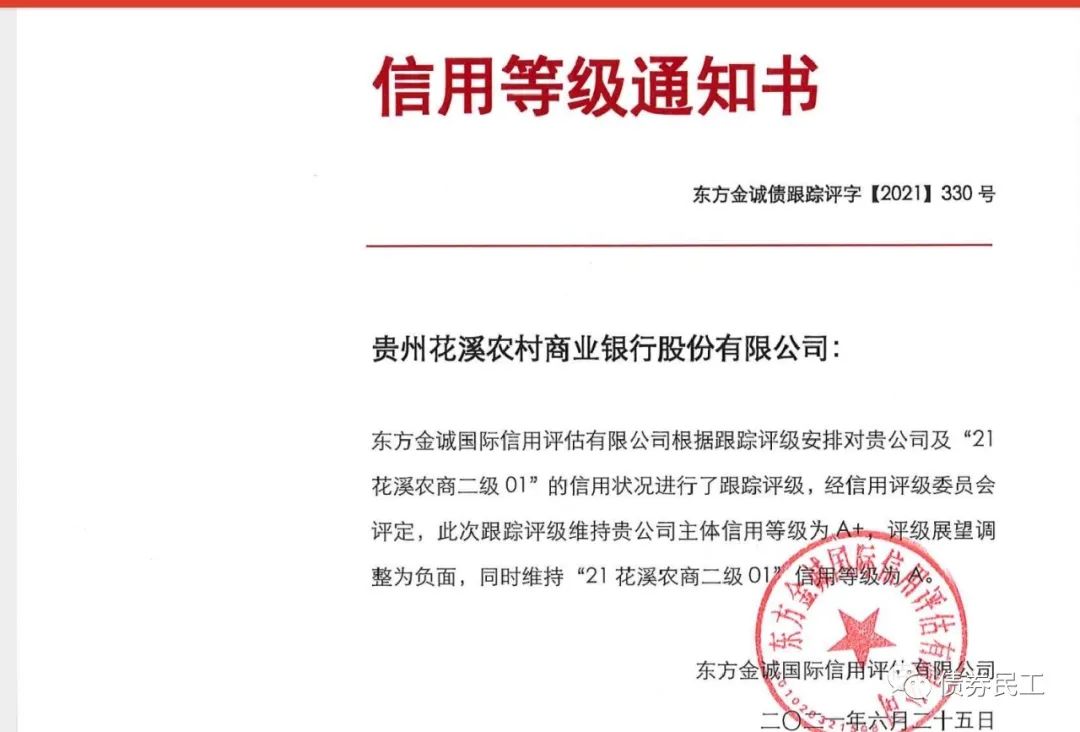 4、貴州花溪農村商業銀行股份有限公司的評級展望調整為負面。本次評級展望調整為負面的原因可能包括關聯方貸款規模較大、貸款質量下行壓力較大和股權結構穩定性變弱等。