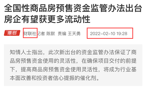 2月10日晚上19:30附近,財聯社和21世紀兩家媒體幾乎同時發出新聞,吹風“預售資金監管放松利好房企”,朋友圈首先刷屏一波。