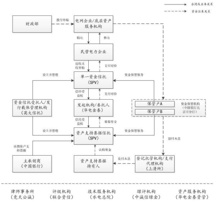 1.發電企業、電網企業與英大信托擬簽署《可再生能源電價附加補助收益權轉讓協議》,英大信托作為標的信托受托人受讓發電企業享有的可再生能源電價附加補助資金收益權及其他權益(即底層資產)。