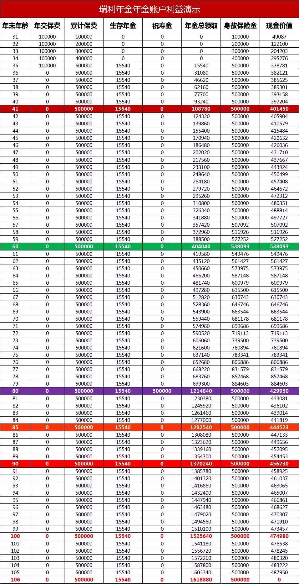 換句話說,如果80歲前身故,可以每年領(lǐng)錢,身故時(shí)還有身故保障金。