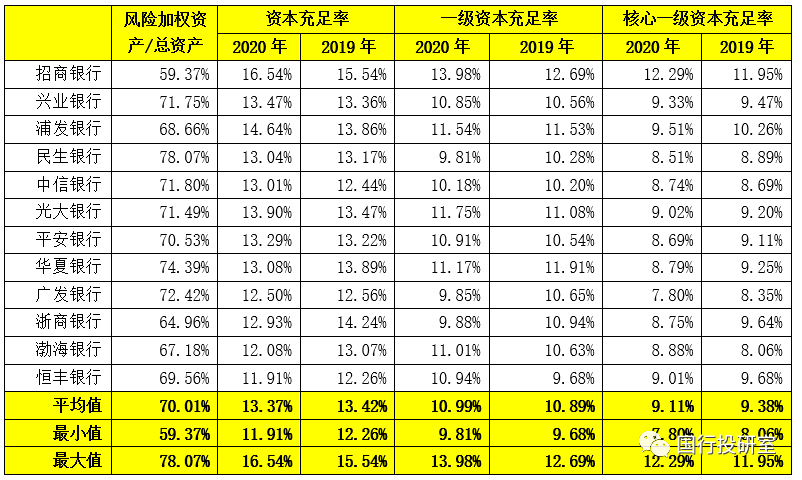 (二)資本情況:招行經營最輕型,部分銀行核心一級資本補充壓力較大