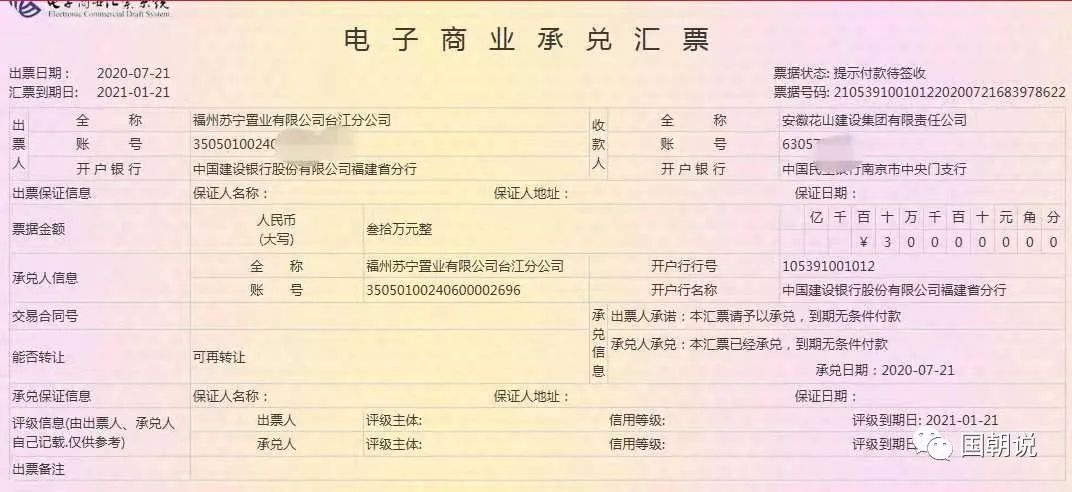 雖然,蘇寧置業很快補繳了稅款,不過這個也給我們提了個醒。2020年下半年,市場上就陸續傳出蘇寧置業子公司的商票發生逾期的事件。