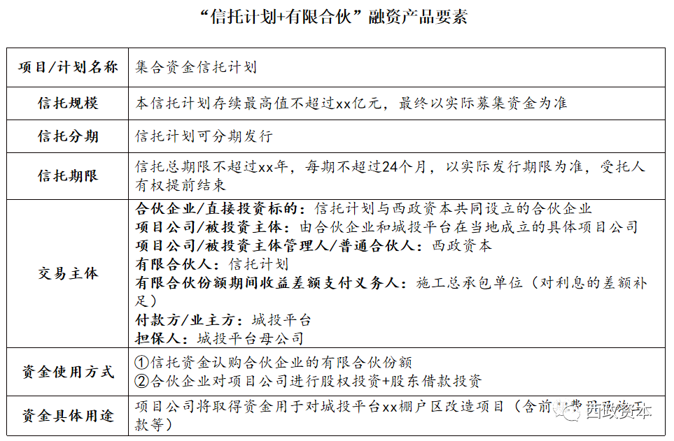 就我們自身的業(yè)務(wù)情況而言,我們認(rèn)為城投平臺(tái)的非標(biāo)融資業(yè)務(wù)還是有很多可以切入的空間,至少在當(dāng)前環(huán)境下的投資風(fēng)險(xiǎn)方面會(huì)比普通民營(yíng)房企的前融業(yè)務(wù)好上一些。具體來(lái)說(shuō),一是在業(yè)務(wù)模式和風(fēng)控邏輯方面與地產(chǎn)非標(biāo)融資業(yè)務(wù)高度相近,二是在基金產(chǎn)品存在備案難、募集難的情況下,我們通過(guò)“信托計(jì)劃+有限合伙”的產(chǎn)品形式操作城投的非標(biāo)業(yè)務(wù),投資人對(duì)底層資產(chǎn)的接受度高出不少,這類信托非標(biāo)在當(dāng)前的理財(cái)市場(chǎng)也仍舊比單純的房地產(chǎn)信托產(chǎn)品更受歡迎。除上述以外,最近風(fēng)頭日盛的銀行理財(cái)子資金也有很多介入城投平臺(tái)融資業(yè)務(wù)的空間,這也為我們通過(guò)銀行理財(cái)子、券商、保理等機(jī)構(gòu)一起介入城投平臺(tái)的標(biāo)類與非標(biāo)融資提供了更多的操作路徑選擇。