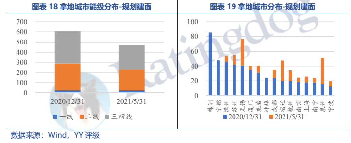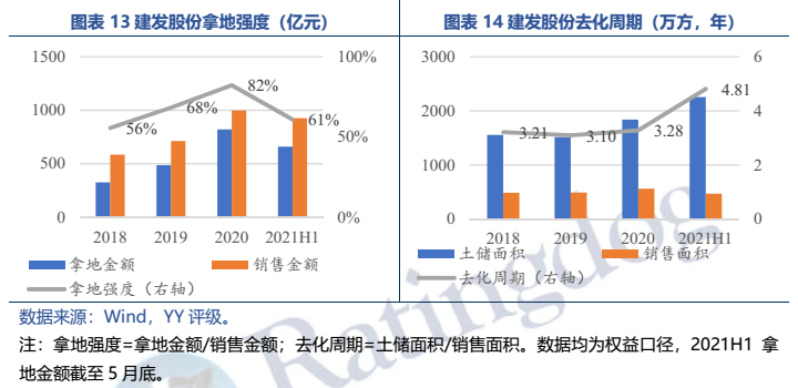 此外,在亮眼的銷售業(yè)績下,資產(chǎn)瑕疵開始顯現(xiàn)。由于2016-2017年的激進擴張,公司高溢價土地疊加限價政策出現(xiàn)虧損,2021年4月,公司公告稱,因受多城市限價政策影響,公司為5個地產(chǎn)項目計提存貨跌價準備19.81億元。而且這樣高溢價拿地的“大手筆”近年來并未見放慢腳步。