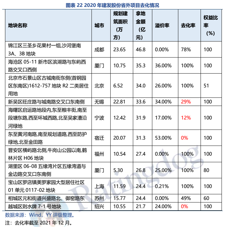 針對這一隱患,本文對建發(fā)近幾年高溢價拿地的項目進行梳理,發(fā)現(xiàn)部分新增土儲預計毛利為負,以及省外部分項目去化緩慢,資產(chǎn)質(zhì)量存在一定隱憂,短期債務壓力持續(xù)攀升下公司負債端與資產(chǎn)端存在一定錯配。行業(yè)負面沖擊波影響下,地產(chǎn)業(yè)務融資成本不可避免抬升,雖股東背景支持尚可依賴,但激進開疆后的債務壓力不容小覷。