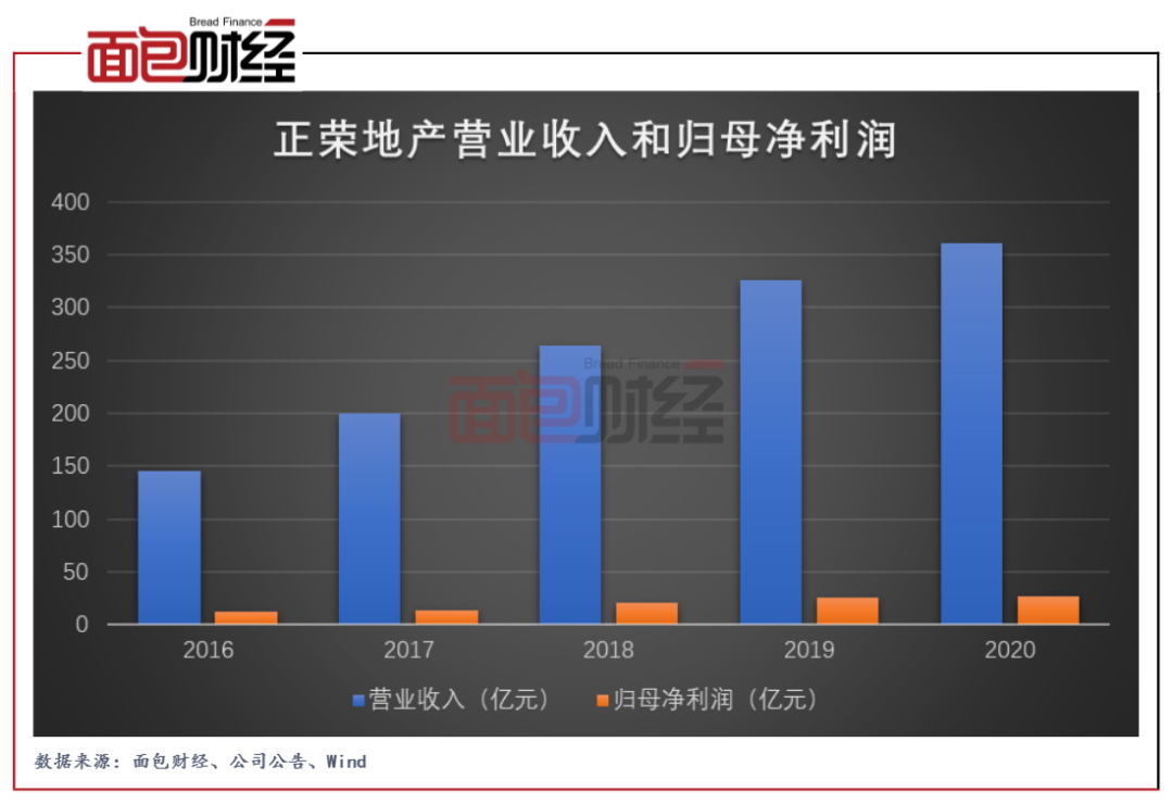 年報顯示,正榮地產2020年實現營業收入361.26億元,同比增長約10.96%;歸母凈利潤26.51億元,同比增長約5.79%。公司的業績增速達到近五年來最低水平。