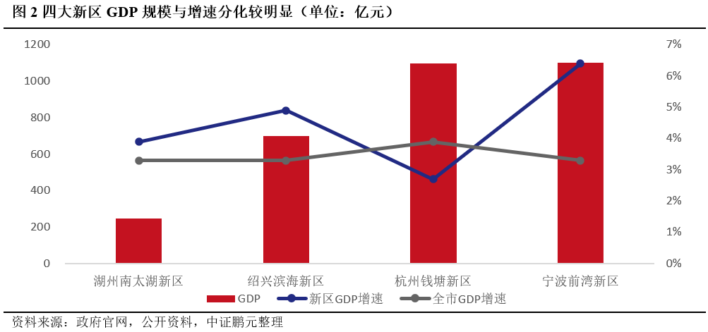 紹興濱海新區固定資產投資規模最高,作為浙江省重點建設的高能級平臺,四大新區整體增速水平較高