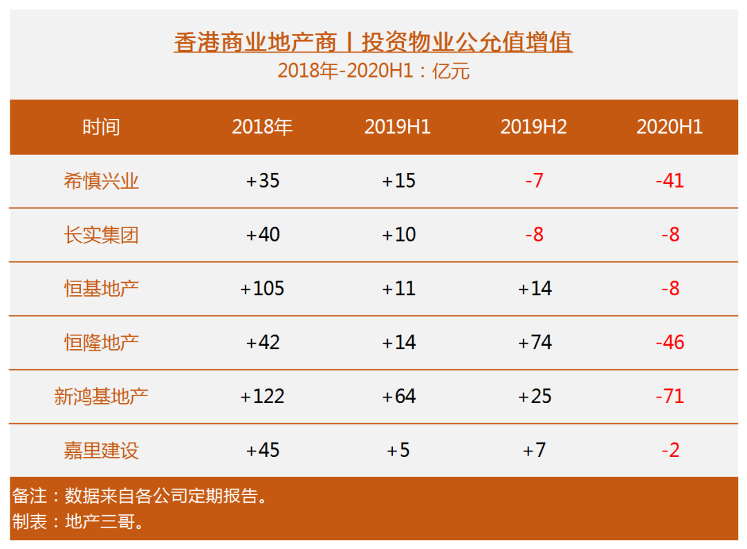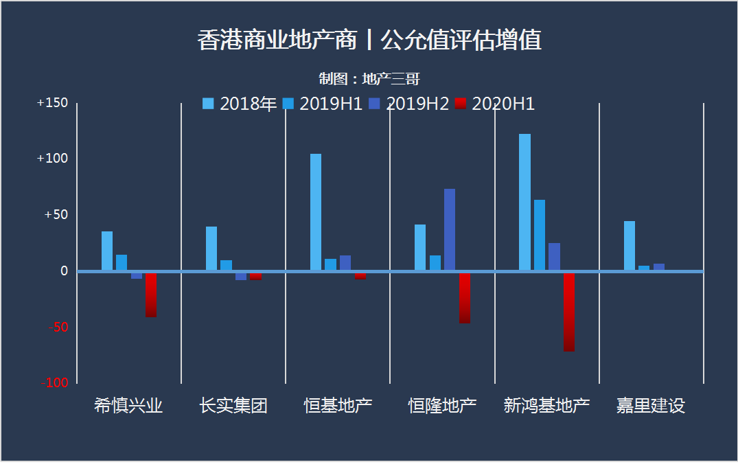 自2019年下半年以來,香港幾個主要地產商的資產評估價值都出現減值。