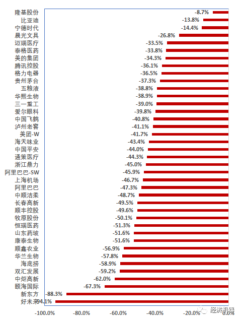 圖1,2020年以來(lái),部分核心資產(chǎn)高點(diǎn)回撤幅度