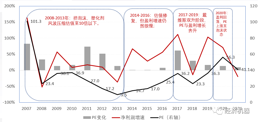 3)2017-2019年:提價(jià)成功,盈利兌現(xiàn),帶動(dòng)了戴維斯雙升。期間,股價(jià)上漲270%,但由于盈利高增長(zhǎng),PE估值從25倍上升到36倍;
