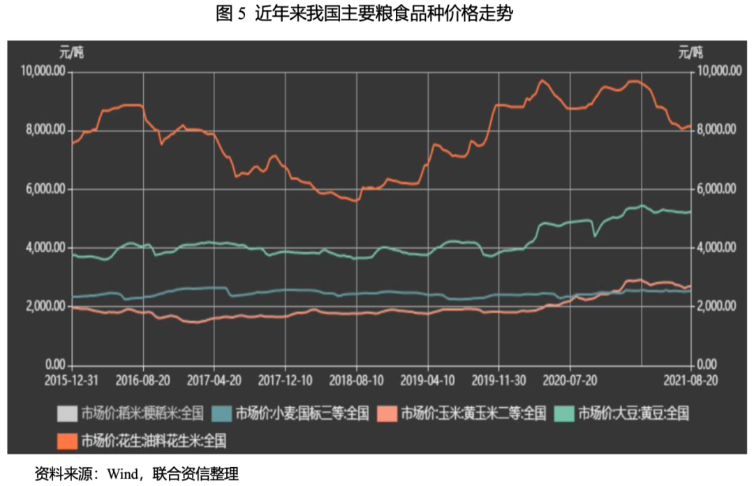 2021年1月,根據(jù)《中共中央關(guān)于制定國民經(jīng)濟(jì)和社會(huì)發(fā)展第十四個(gè)五年規(guī)劃和二〇三五年遠(yuǎn)景目標(biāo)的建議》目標(biāo)任務(wù),2021年,農(nóng)業(yè)供給側(cè)結(jié)構(gòu)性改革深入推進(jìn),糧食播種面積保持穩(wěn)定、產(chǎn)量達(dá)到1.3萬億斤以上。“十四五”時(shí)期各省(自治區(qū)、直轄市)要穩(wěn)定糧食播種面積、提高單產(chǎn)水平,我國糧食自給率有望提高。同時(shí),2020年以來,大豆、玉米、小麥、花生等各主要農(nóng)作物價(jià)格上漲,有望帶動(dòng)其播種量增加。未來尿素農(nóng)業(yè)需求有望保持溫和增長。