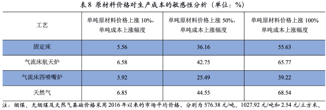 整體看,氣流床工藝的生產(chǎn)成本優(yōu)勢(shì)顯著,特別是在當(dāng)前“限電限產(chǎn)”以及煤炭價(jià)格處于高位的情況下,氣流床航天爐裝置的成本優(yōu)勢(shì)更為明顯。