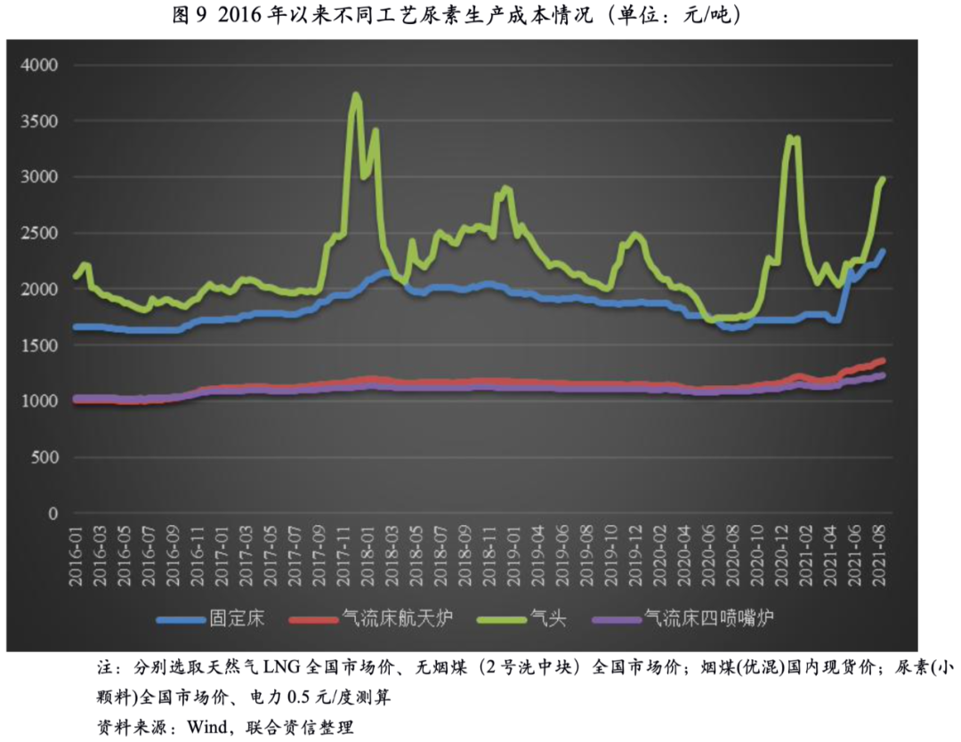 氣頭尿素裝置生產(chǎn)成本公式為:600×天然氣價(jià)格+700×電價(jià)+350。