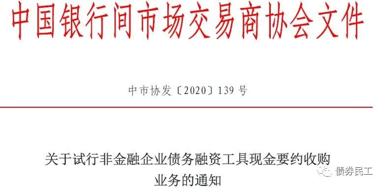 中國銀行間市場交易商協(xié)會(以下簡稱“交易商協(xié)會”)于2020年11月2日發(fā)布《關(guān)于試行非金融企業(yè)債務(wù)融資工具現(xiàn)金要約收購業(yè)務(wù)》,其中最重要的規(guī)定是可以對未到期的債務(wù)融資工具進行進行市場化收購回售。根據(jù)通知的要求,“現(xiàn)金要約收購是指發(fā)行人向特定債務(wù)融資工具(以下稱“標(biāo)的債券”)的全體持有人發(fā)出要約,以現(xiàn)金方式收購全部或部分流通中標(biāo)的債券并注銷的行為”。在這里需要明確的是,要約是面向全體債券持有人,但是收購結(jié)果是可以收購全部或者部分債券,并不強制要求對全部債券進行收購。而且更重要的是,《通知》中規(guī)定,收購凈價可以低于每百元面值標(biāo)的債券剩余本金。