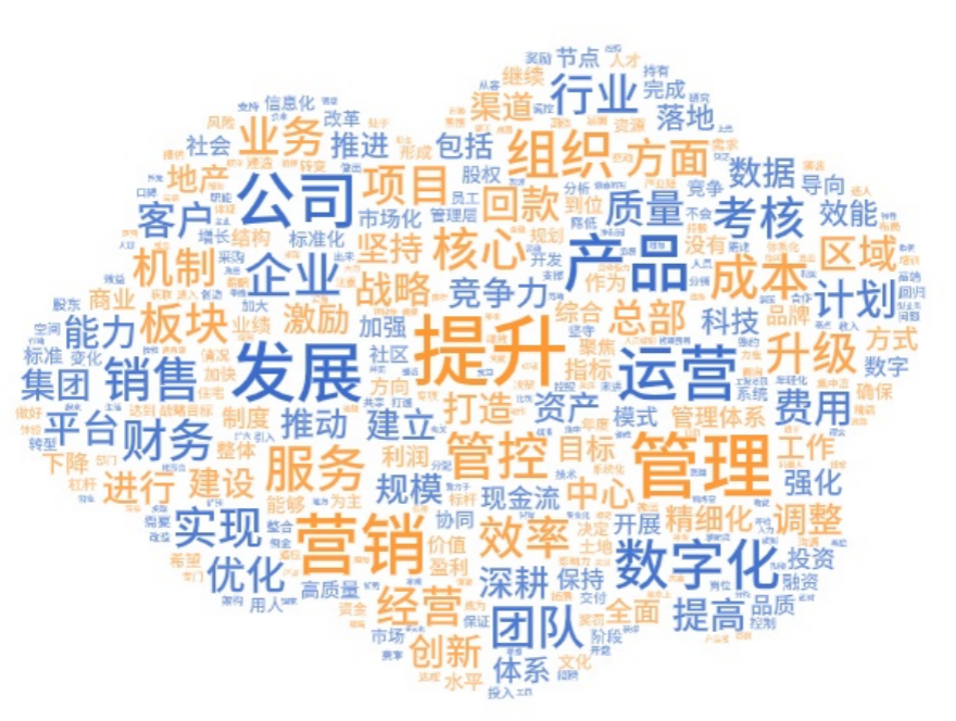具體舉措中,提及頻次最高的幾個關鍵詞為產(chǎn)品、營銷、運營和數(shù)字化。由此可見,這四個方面是正是房企當前調(diào)整、優(yōu)化、變革的主要切入點。”