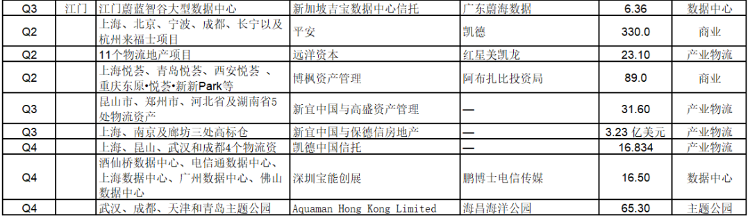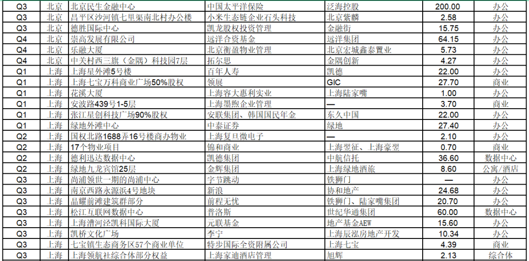 工業(yè)物業(yè)成交錄得大幅提升,占比15%,尤其是錄得多筆物流資產(chǎn)包交易。受益于在線新經(jīng)濟(jì)而加速發(fā)展的數(shù)據(jù)中心連續(xù)三個季度錄得成交。