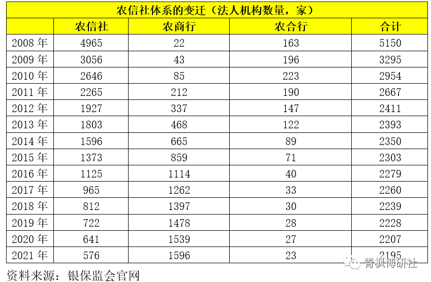 2、2011年,原銀監(jiān)會宣布不再組建新的農(nóng)信社和農(nóng)合行,全面取消資格股,逐步將有條件的農(nóng)信社改組為農(nóng)商行,農(nóng)合行要全部改組為農(nóng)商行。