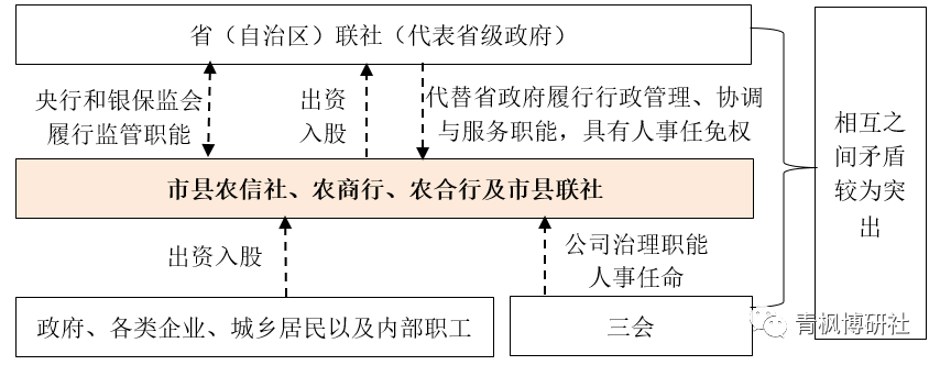 但是也應(yīng)認(rèn)識到,農(nóng)信體系本身是省聯(lián)社的入股股東,但省聯(lián)社卻依靠省級政府的授權(quán)反過來履行對農(nóng)信體系的行政管理職能,這一畸形的治理架構(gòu)顯得與現(xiàn)代公司治理體系格格不入。特別是,隨著農(nóng)信社、農(nóng)合行逐步向農(nóng)商行轉(zhuǎn)型,意味著農(nóng)信體系的公司治理機制將逐步向股份制商業(yè)銀行靠攏,公司治理與運營更為規(guī)范,使得代表行政管理職能的省聯(lián)社與“三會一層”為代表的公司治理體系之間存在天然矛盾,導(dǎo)致三會一層很容易形同虛設(shè)、決策流于形式。