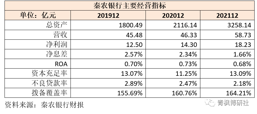 經(jīng)過一系列收購后,秦農(nóng)銀行的實力得以大幅提升。截至2021年底,秦農(nóng)銀行的總資產(chǎn)達到3258.14億元,在農(nóng)商行系統(tǒng)中位居前列。