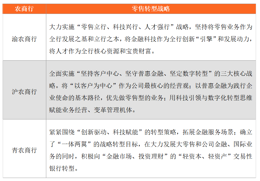 表3:農(nóng)商行零售戰(zhàn)略對比