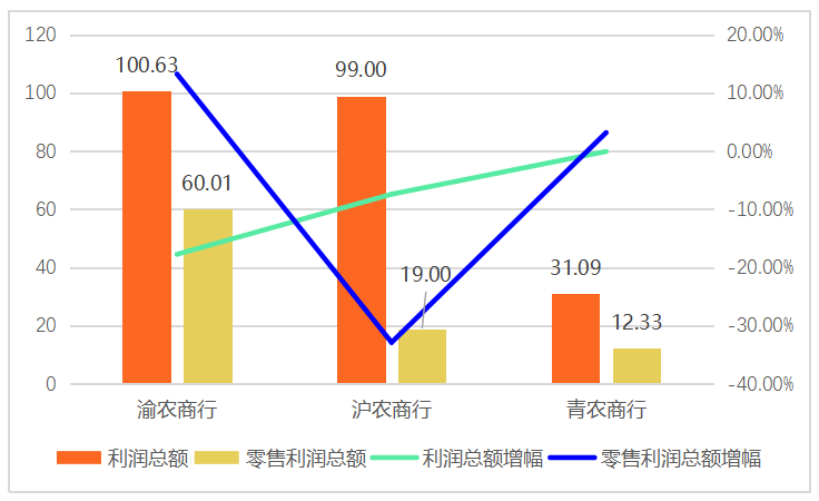 就利潤的穩(wěn)定性而言,青島農(nóng)商行的表現(xiàn)最好,2020年全行利潤總額幾乎與上年度持平,零售利潤總額還略微增長,在充斥著外部壓力和不確定的經(jīng)營環(huán)境下,保持利潤的穩(wěn)定實屬不易。