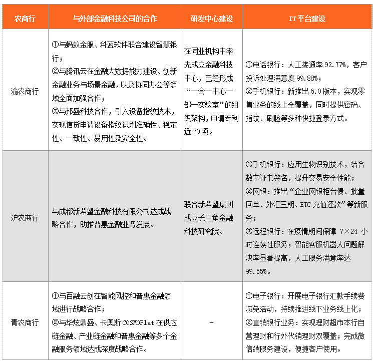 三家最大上市農(nóng)商行零售科技戰(zhàn)略對比