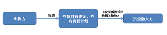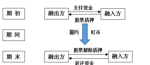 股票質押式回購交易業務包括初始交易和購回交易兩次交易和兩次結算,業務模式為: