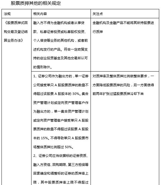 場內股票質押就是大家所熟知的“股票質押式回購”,是指符合條件的資金融入方以所持有的股票或其他證券質押,向符合條件的資金融出方融入資金,并約定在未來返還資金、解除質押的交易,質押期不超過3年。