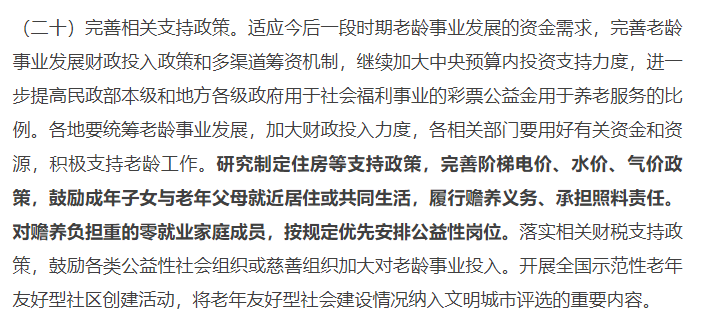 然后11月24日晚,中央《關(guān)于加強新時代老齡工作的意見》,專門提到鼓勵成年子女與老年父母就近居住或共同生活,履行贍養(yǎng)義務(wù)、承擔照料責任。