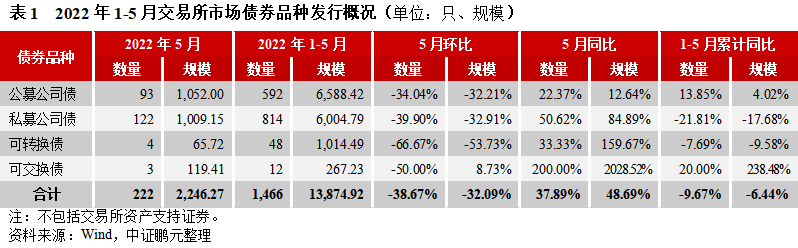 1. 5月份交易所市場(chǎng)發(fā)行信用債券2,246.27億元,環(huán)比下降32%