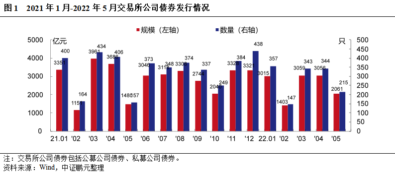 綜合1-5月來(lái)看,交易所債券市場(chǎng)共發(fā)行信用債券1,466只,發(fā)行規(guī)模13,874.92億元,比2021年同期相比發(fā)行數(shù)量和規(guī)模分別下降10%和6%。其中,公募公司債發(fā)行規(guī)模累計(jì)同比分別增長(zhǎng)4%,私募公司債發(fā)行規(guī)模累計(jì)同比下降18%。