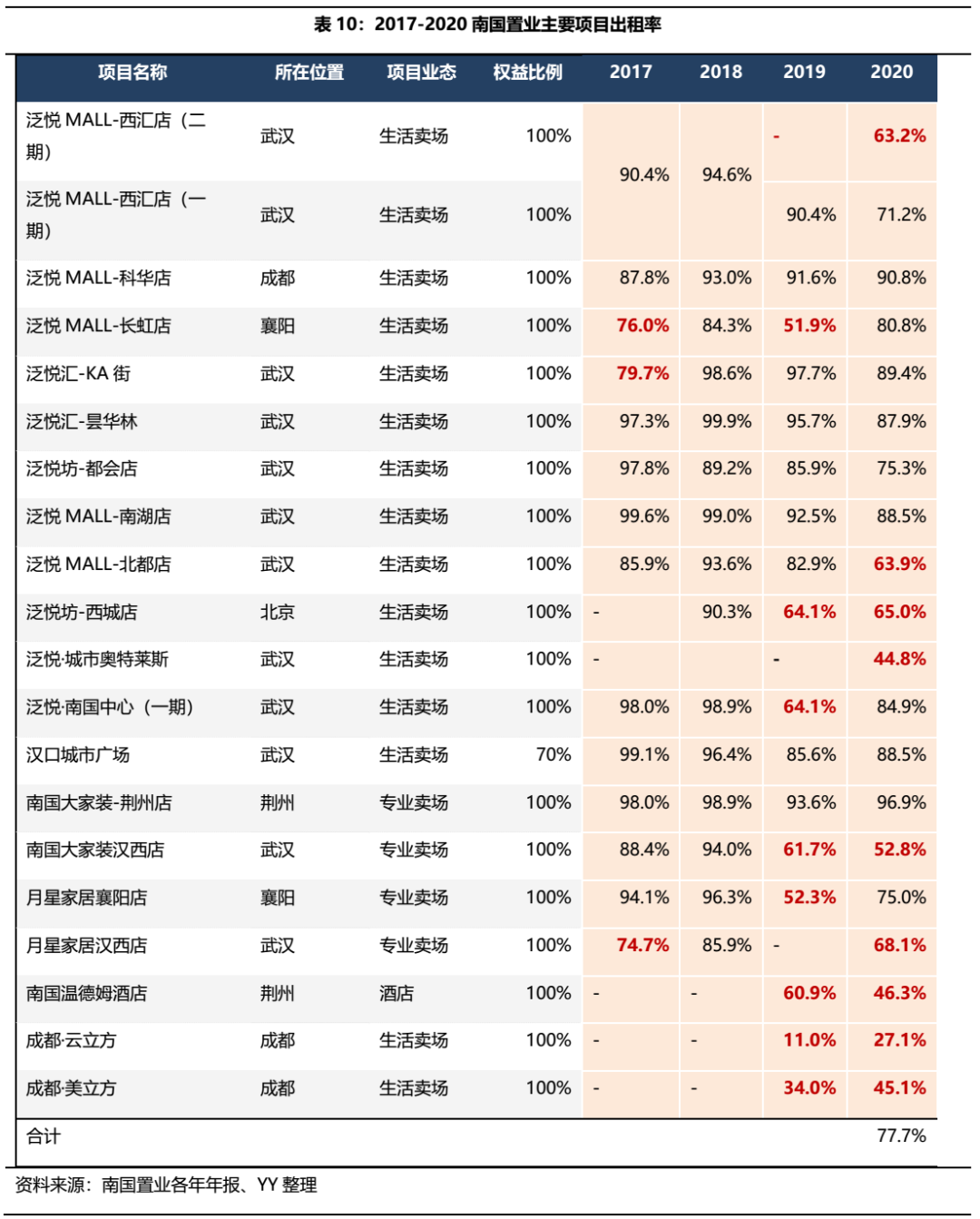 公司商業地產板塊業務的經營主體是子公司南國置業,南國置業起步于武漢,以商業地產為主、涵蓋多種物業類型的綜合性物業開發企業,南國置業堅持以商業物業為引導的開發策略,涵蓋多種類型物業,開發項目主要是商業、辦公、商住(公寓)兩用等多項物業,并采取租售結合的經營模式。