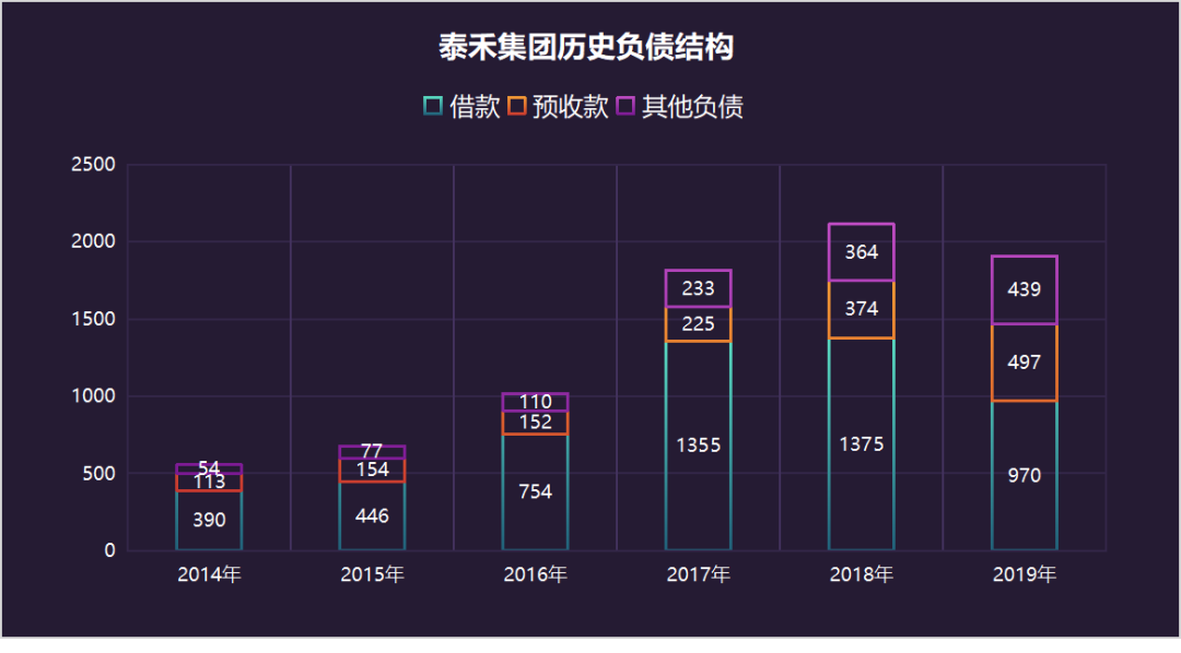 2019年末泰禾的有息借款970億元,比2018年降了400億元。