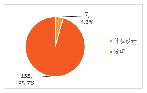 平安信托的專利主要包括發明和外觀設計兩部分。其中,發明專利155件,占到95.7%的比例,覆蓋智能營銷、智能風控、智能作業、研發提效和信息安全等業務領域;外觀設計7件,主要投入在APP上。