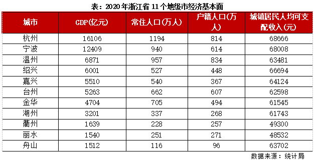 據七普數據顯示,2020年浙江省常住人口6457萬人,較六普凈增長1014萬人,僅次于廣東省,高居全國第二位。其中,杭州、寧波和溫州常住人口都在1000萬人左右,金華、臺州、嘉興和紹興同樣突破500萬人。