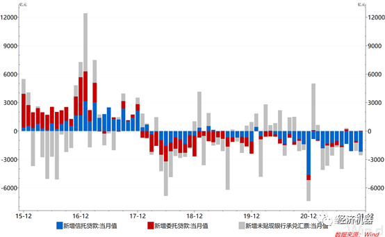 2)新增中長期貸款中,非金融企業貸款新增出現明顯下降,家庭和房地產貸款維持高位。11月中長期貸款中,非金融公司中長期貸款新增3417億,同比少增2470億元,較2019年同期還低約790億元。雖然11月企業生產有顯著改善,但信貸需求依然疲弱,可能表明企業對未來依然較為謹慎。