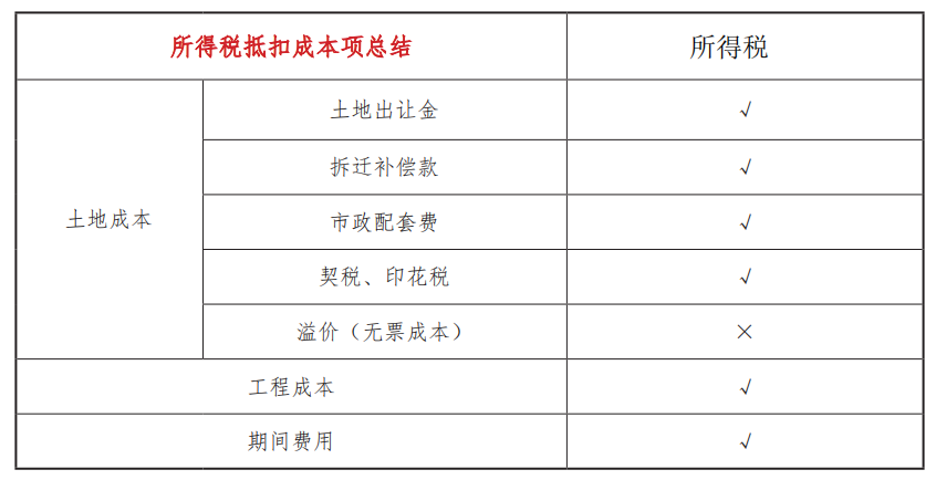 從組成上來看:準予扣除金額 = 已銷開發產品計稅成本 + 期間費用  + 稅金附加