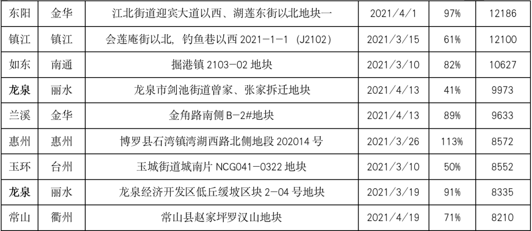 紹興諸暨、麗水龍泉更是在短短的一個半月內兩次刷新全市(縣)土地最高單價,土地市場熱度明顯處于高位。