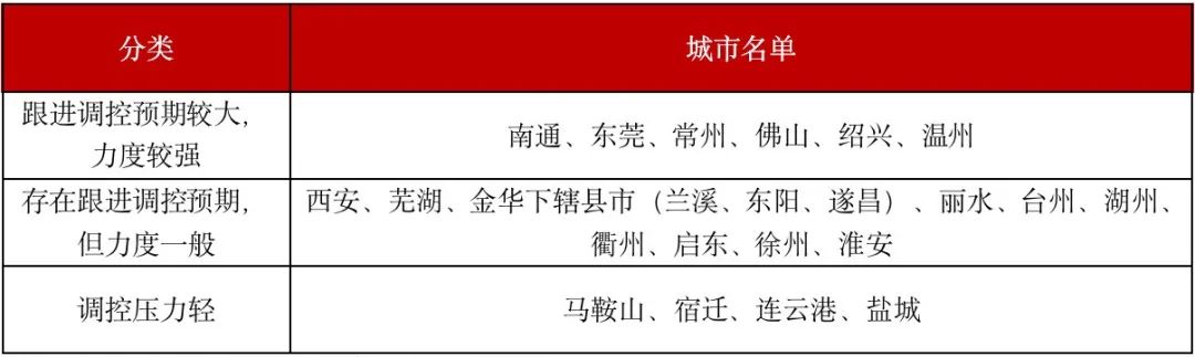 在土地市場熱度升溫的影響下,今年3月以來,永康、義烏等多個縣級市收緊了房地產政策。預計會有更多城市跟進土地側調控,南通、東莞調控收緊預期最強。