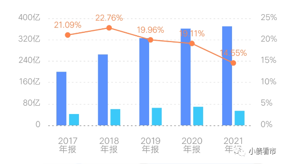 2018年至2021年,正榮地產少數股東權益分別為79.42億、132.24億、166.08億以及201.87億元占比過半,但少數股東損益卻變化不大占比僅兩成,少股股東權益在凈利潤中的占比嚴重不匹配。