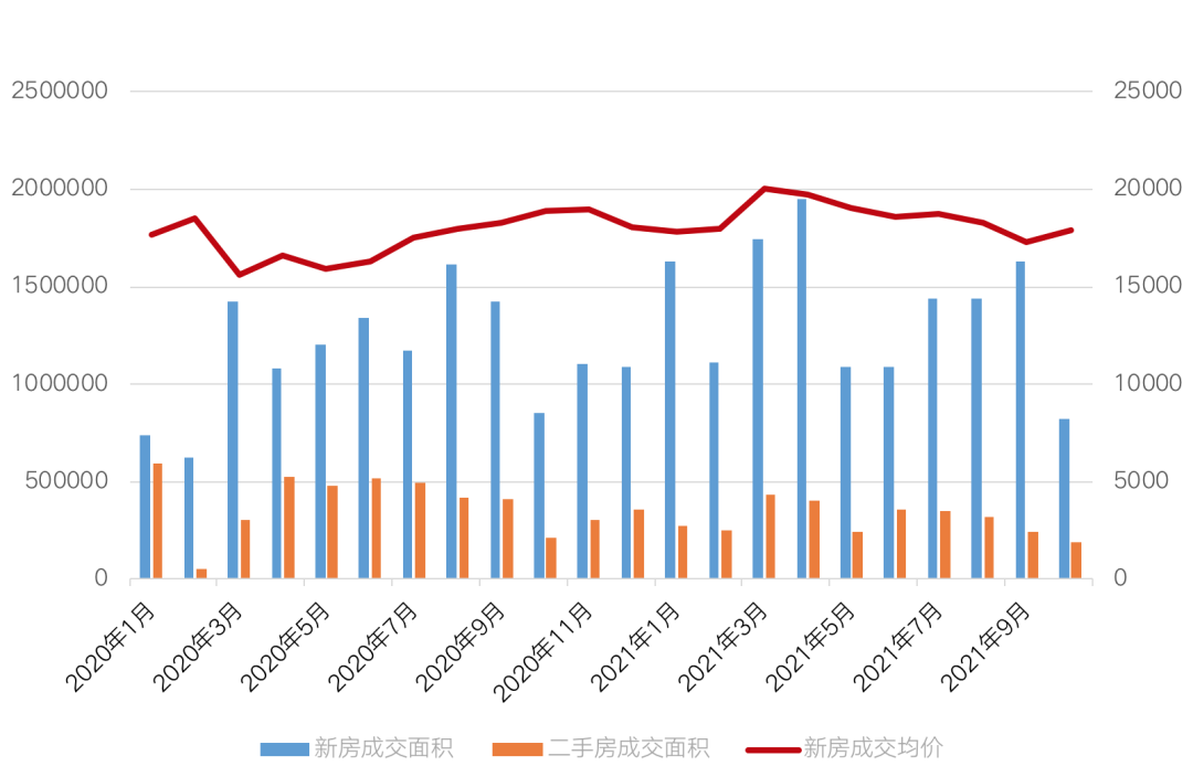 及新房成交均價(jià)變動(dòng)情況(單位:萬(wàn)平方米,元/平方米)