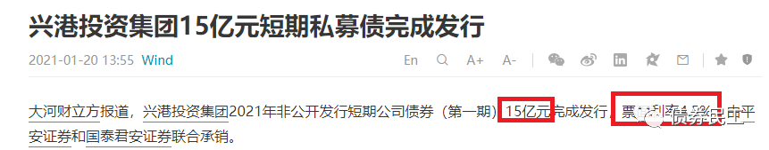 2021年1月19日,鄭州航空港興港投資集團有限公司成功發行一期短期公司債券,發行規模為15億元,票面利率為4.5%。這是繼河南投資集團短期公司債券成功發行之后,永煤事件后河南省國有企業發行的第二只信用債券。