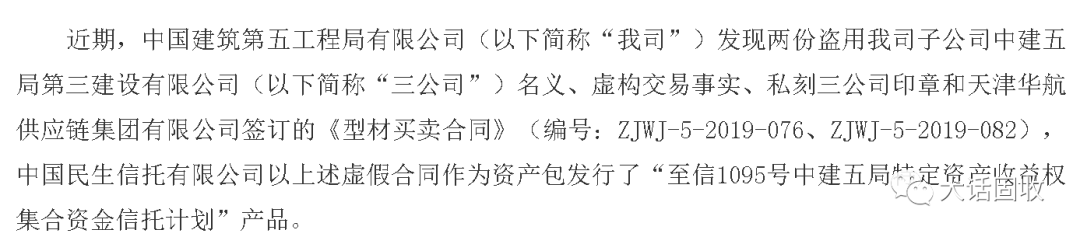 - 天津華航供應鏈集團有一筆以“中建五局三公司”為核心企業的應收賬款