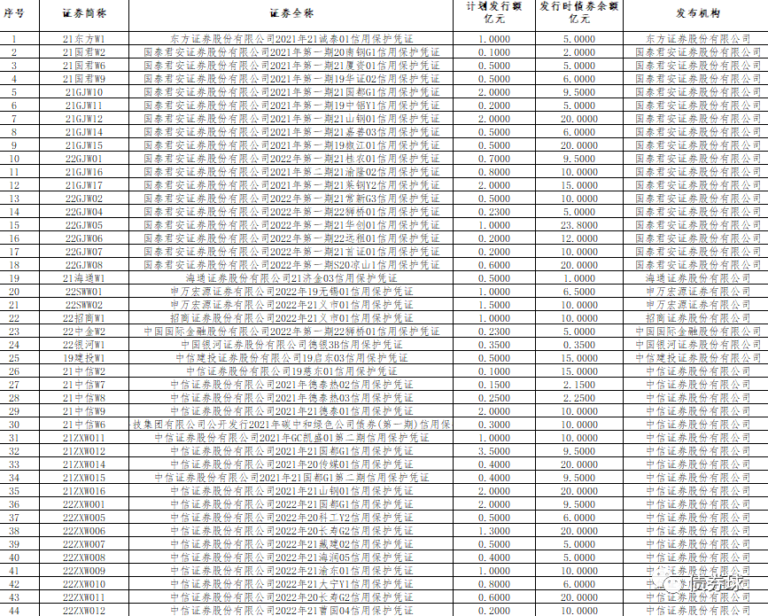 2019年,可以稱之為信用保護憑證元年,主要規定均于2019年制定。據不完全統計,目前有44只信用保護憑證產品,主要創設機構為國君和中信,其中國君17只、中信19只。就具體產品來看,主要是為了解決主體和債項為AA+債券的質押問題,進一步來說,就是解決這部分產品的流動性問題。