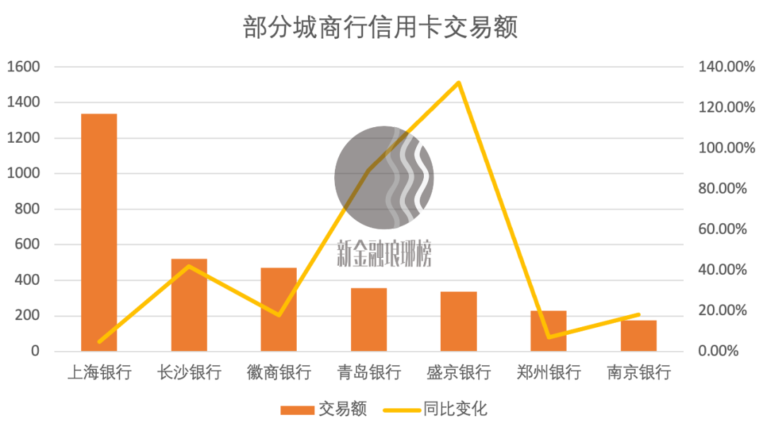 在新金融瑯琊榜統(tǒng)計的25家城商行中,披露了信用卡交易額的僅有7家。上海銀行遙遙領先,也是唯一一家全年信用卡交易額超過千億元的城商行。