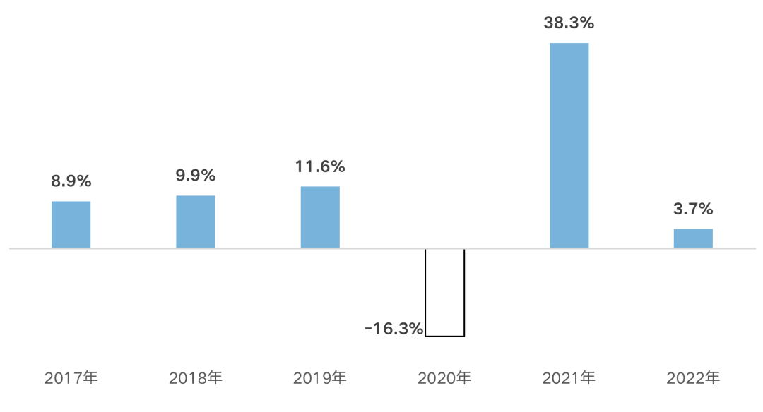 圖:2017年-2022年全國1-2月開發投資額同比增速(單位:%)