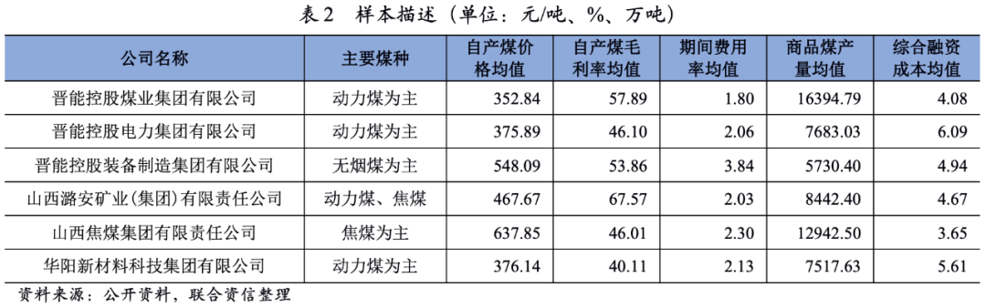 由于煤炭價格受煤種、煤質、產地、運輸距離等因素影響較大,區域特性明顯,因此該模型樣本采用山西省主要煤炭企業。具體如下: