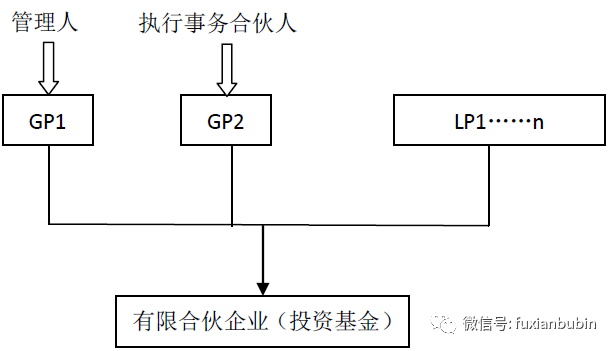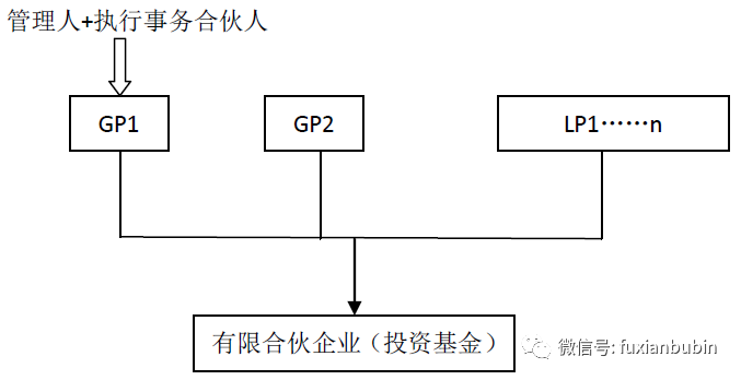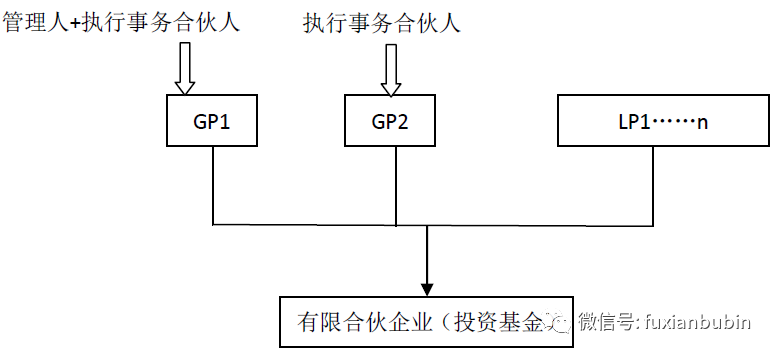 二是一名GP擔任基金管理人,另一名GP擔任執行事務合伙人但不具有基金管理人資格。其結構如圖所示: