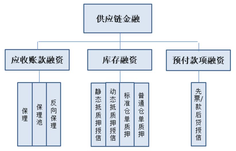 我們知道企業(yè)的經(jīng)營環(huán)節(jié),主要是采購、生產(chǎn)和銷售環(huán)節(jié),在這些環(huán)節(jié)中就必然會有上下游企業(yè)之分。在整個鏈條中,因為有的上下游企業(yè)資金緊張,從而導致供應商供不上貨,經(jīng)銷商賣不出去庫存,從而形成大量的預付款或者應收款,以及產(chǎn)品庫存,整個鏈條的轉(zhuǎn)動變慢甚至停滯,影響到一些有一定市場地位的核心企業(yè)。那么圍繞這些大的核心企業(yè),根據(jù)整個鏈條的轉(zhuǎn)動節(jié)點,設計出一些金融解決方案,幫產(chǎn)業(yè)鏈上的企業(yè)紓困解難。大體來說供應鏈金融主要有以下幾種模式。