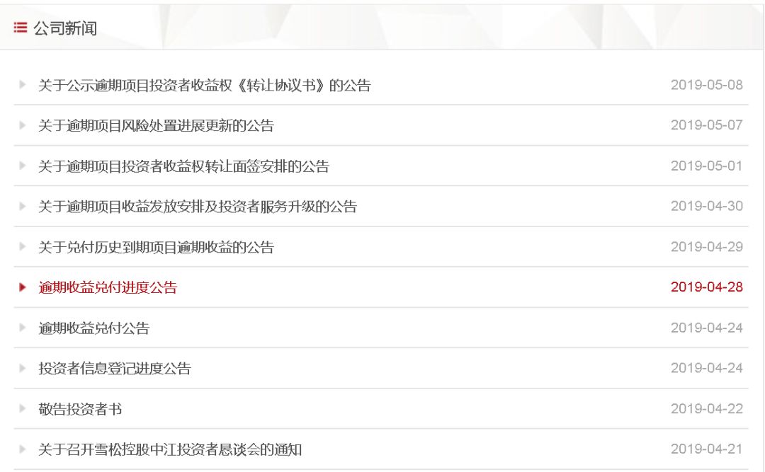 - 本次轉(zhuǎn)讓的標的為違約項目的利息權利;轉(zhuǎn)讓后雪松控股將在7月22日之前按原合同約定收益率支付利息給投資者
